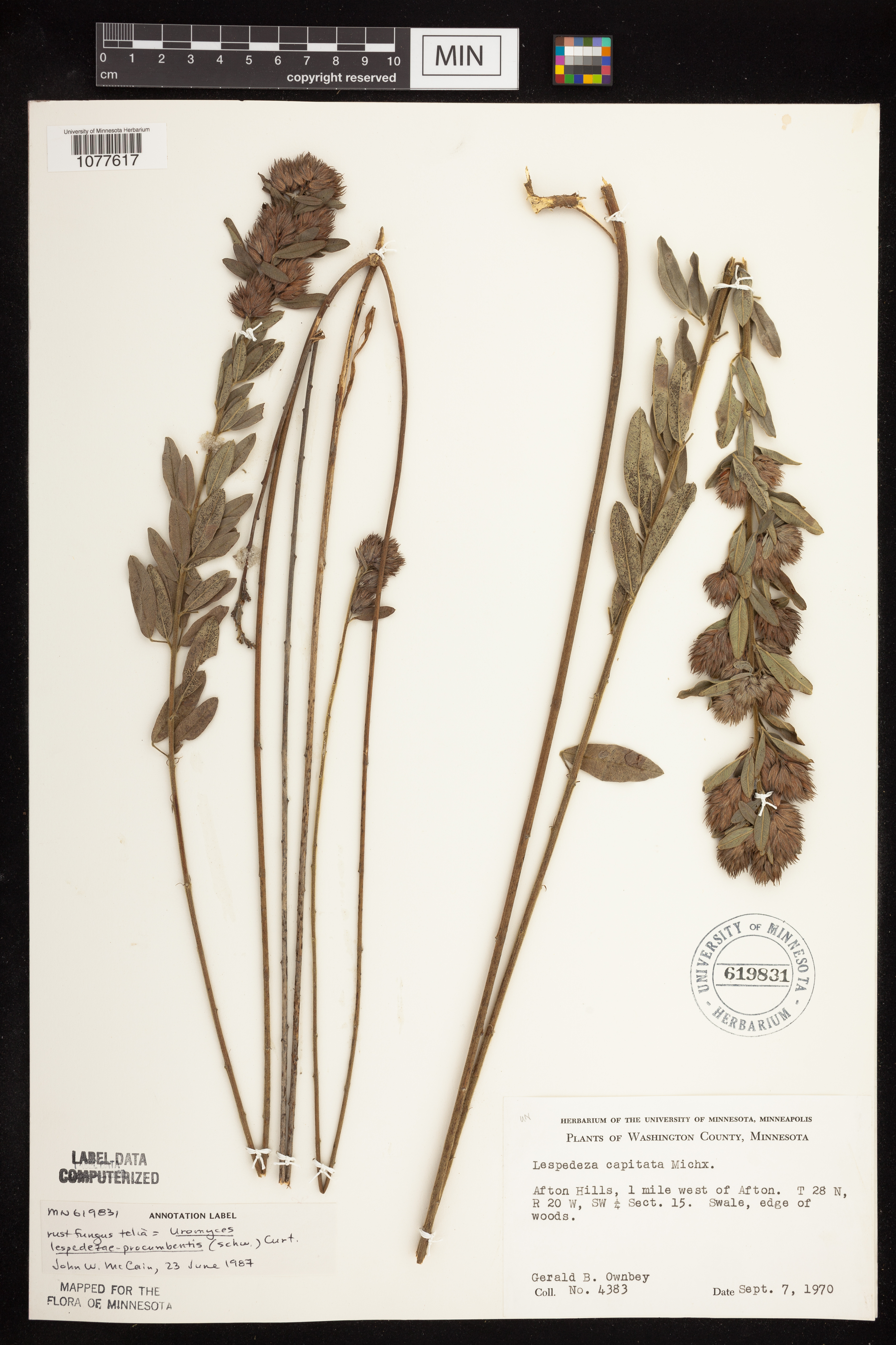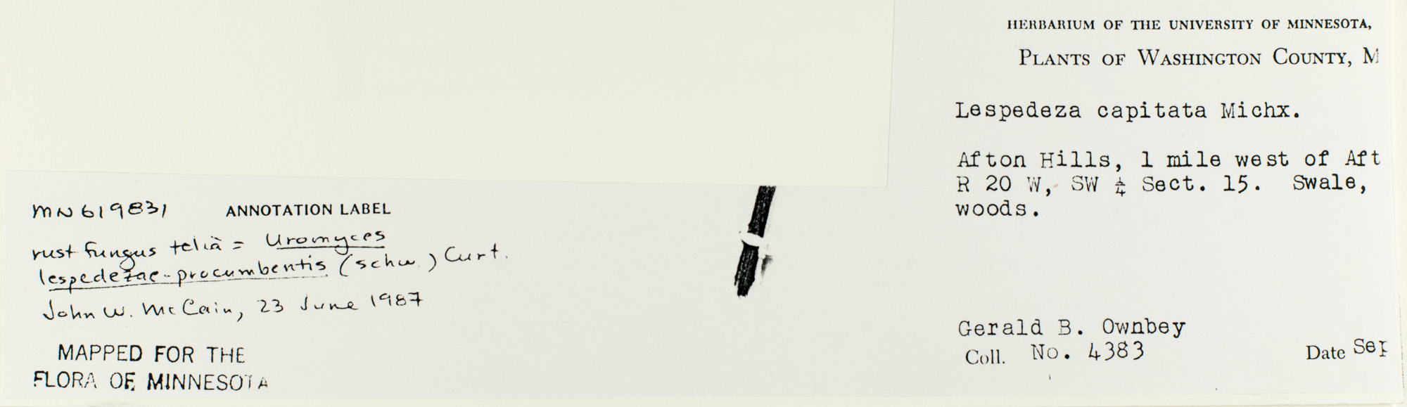[annotator note: rust fungus telia = Uromyces lespedezae - procumbentis (Schw.) Curt. John W. McCain, 23 June 1987]