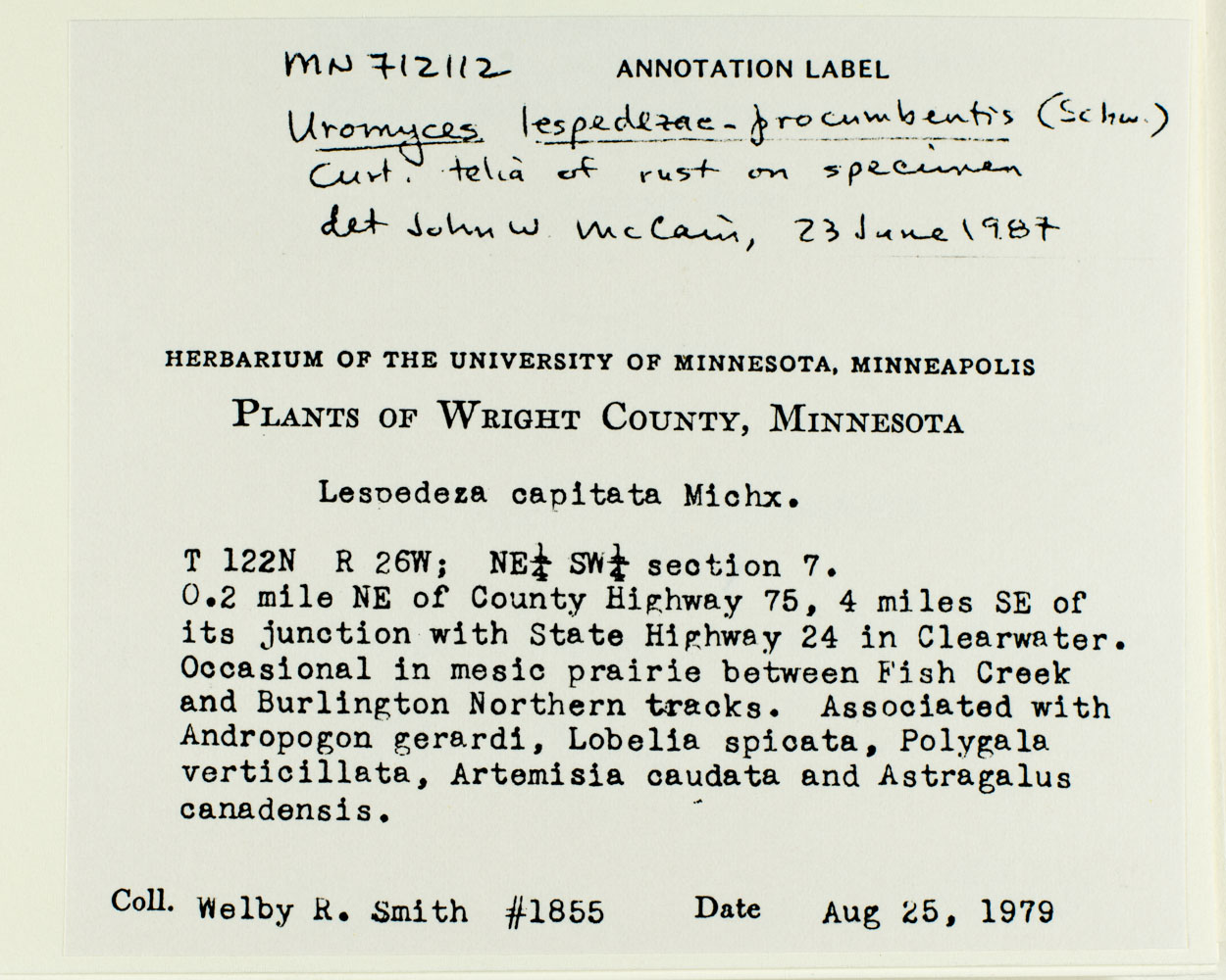 [annotator note: Uromyces lespedezae - procumbentis (Schw.) Curt. telia of rust on specimen det. John W. McCain, 23 June 1987]