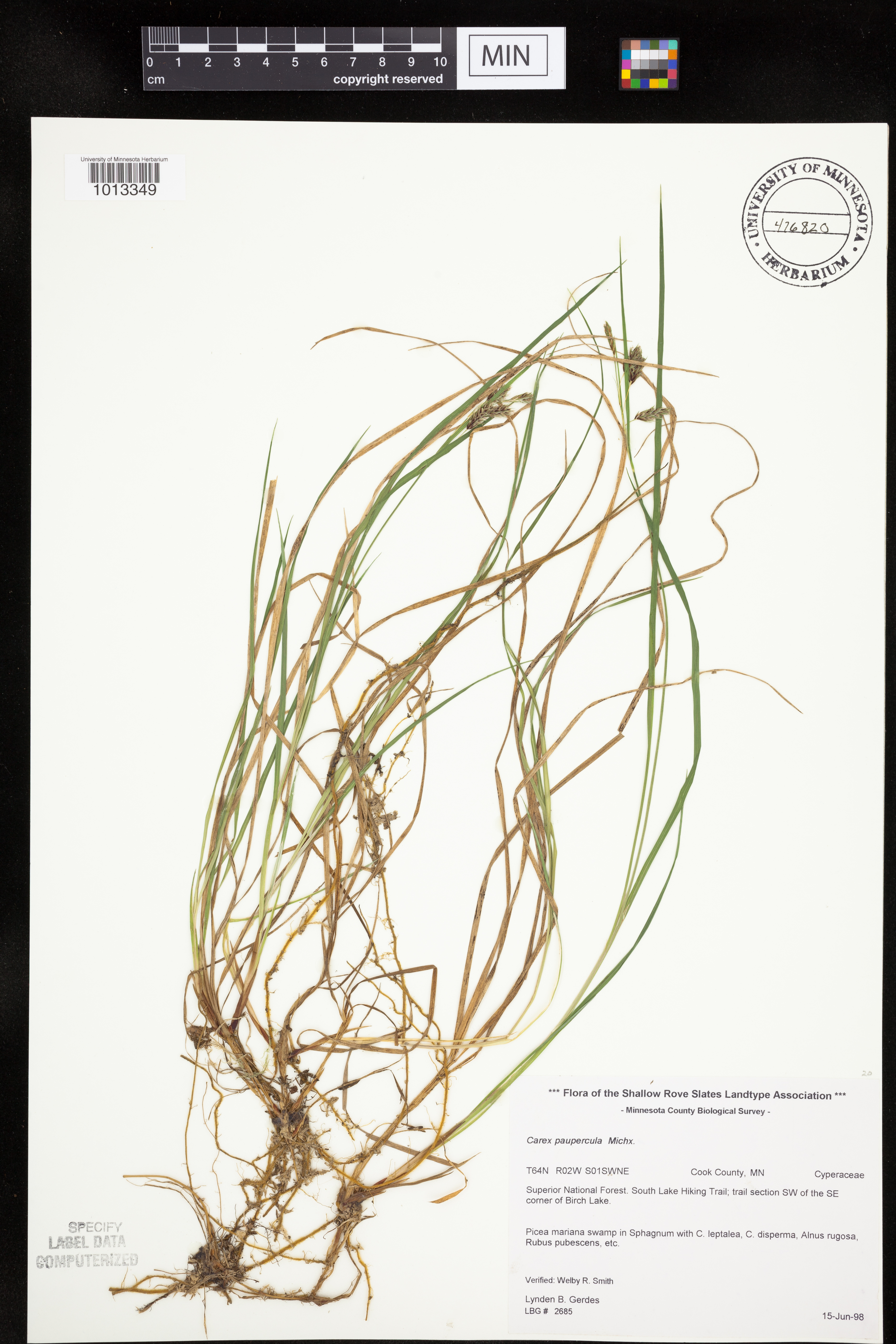 Picea mariana swamp in Sphagnum with C. leptalea, C. disperma, Alnus rugosa, Rubus pubescens, etc.
