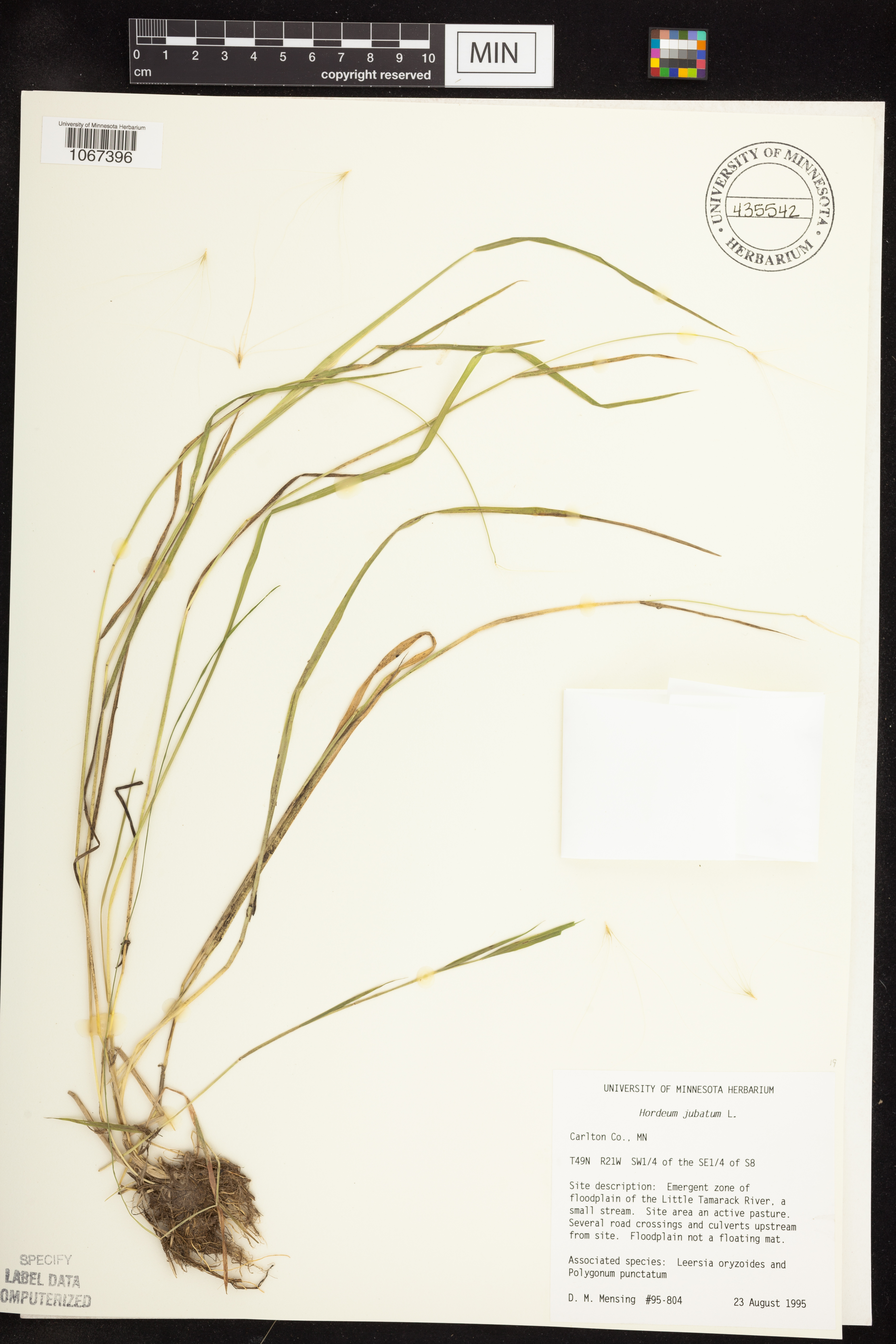 Emergent zone of floodplain of the [river], a small stream. Site area an active pasture. Several road crossings and culverts upstream from site. Floodplain not a floating mat. Associates species: Leersia oryzoides and Polygonum punctatum