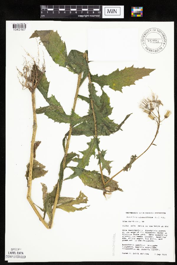 Floodplain forest at the edge of the [river]; Many understory grasses and weedy species. American elm, silver maple, box elder, and green ash in the overstory. Associated species: Acalypha virginica, leersia oryzoides, Echinochloa sp, Setaria viridis