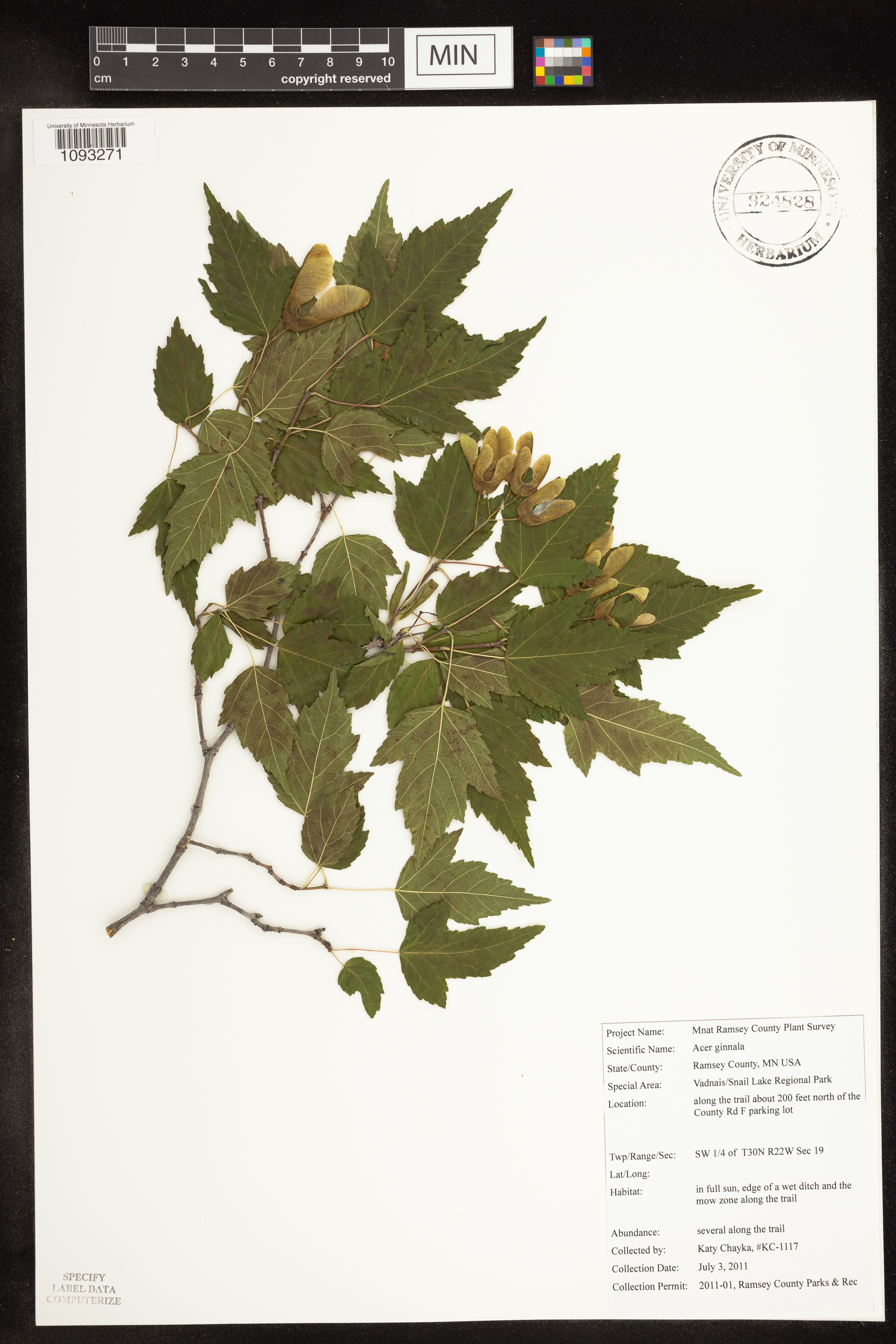 In full sun, edge of a wet ditch and the mow zone along the trail.