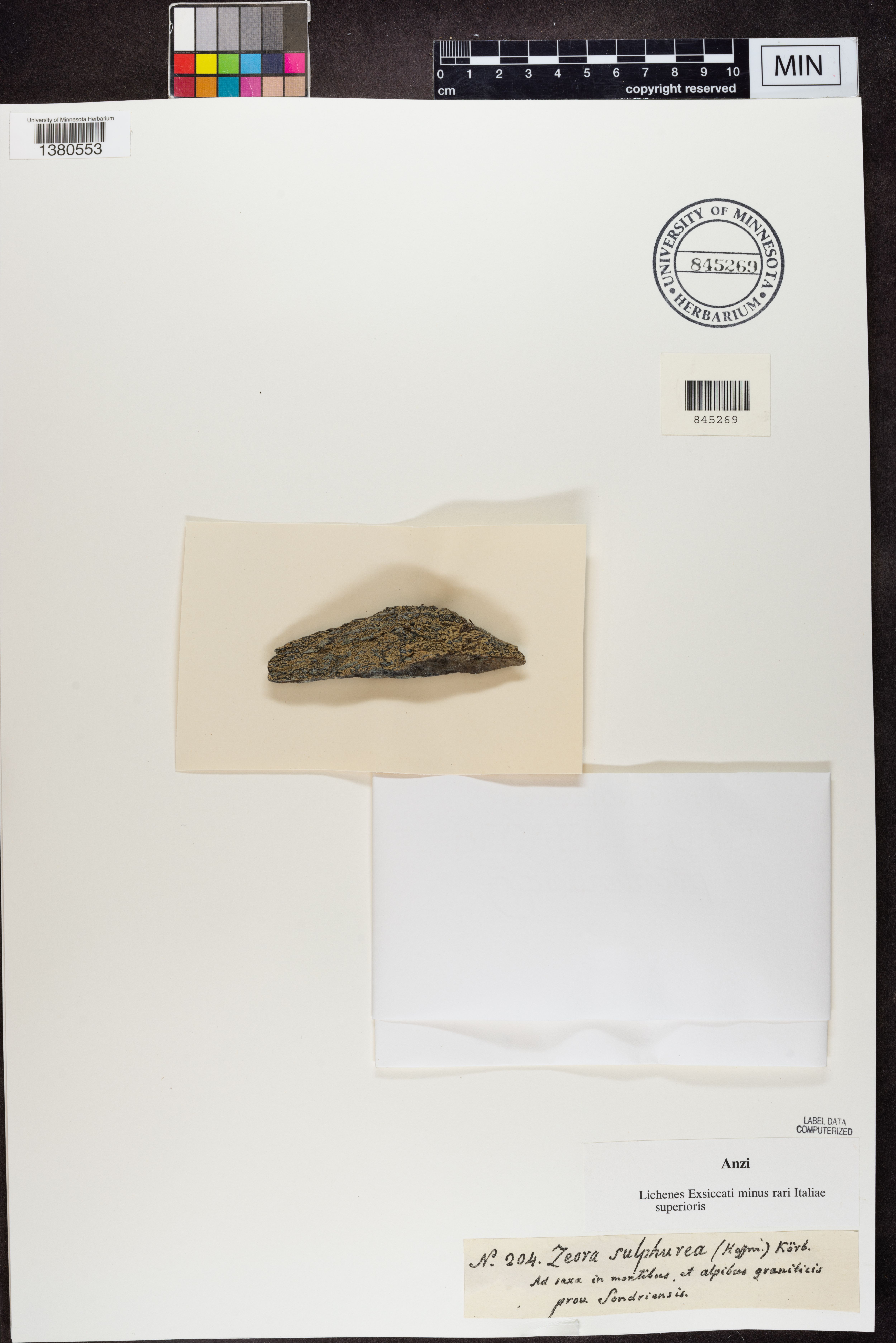 filed at MIN under 'Anzi - Lichenes Exsiccati Minus Rari Italiae Superioris'