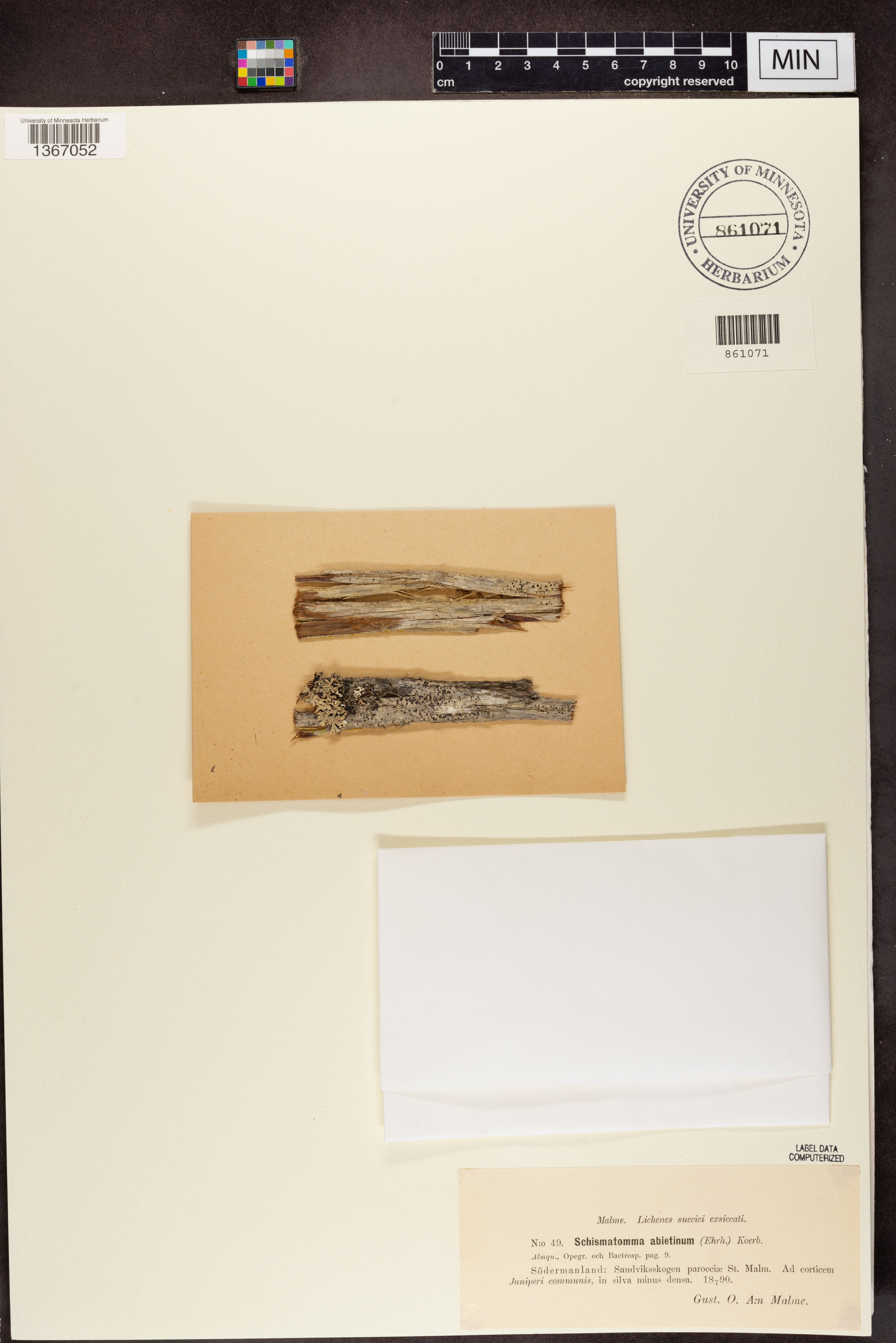 filed at MIN under 'Malme - Lichenes Sucici Exsiccati'