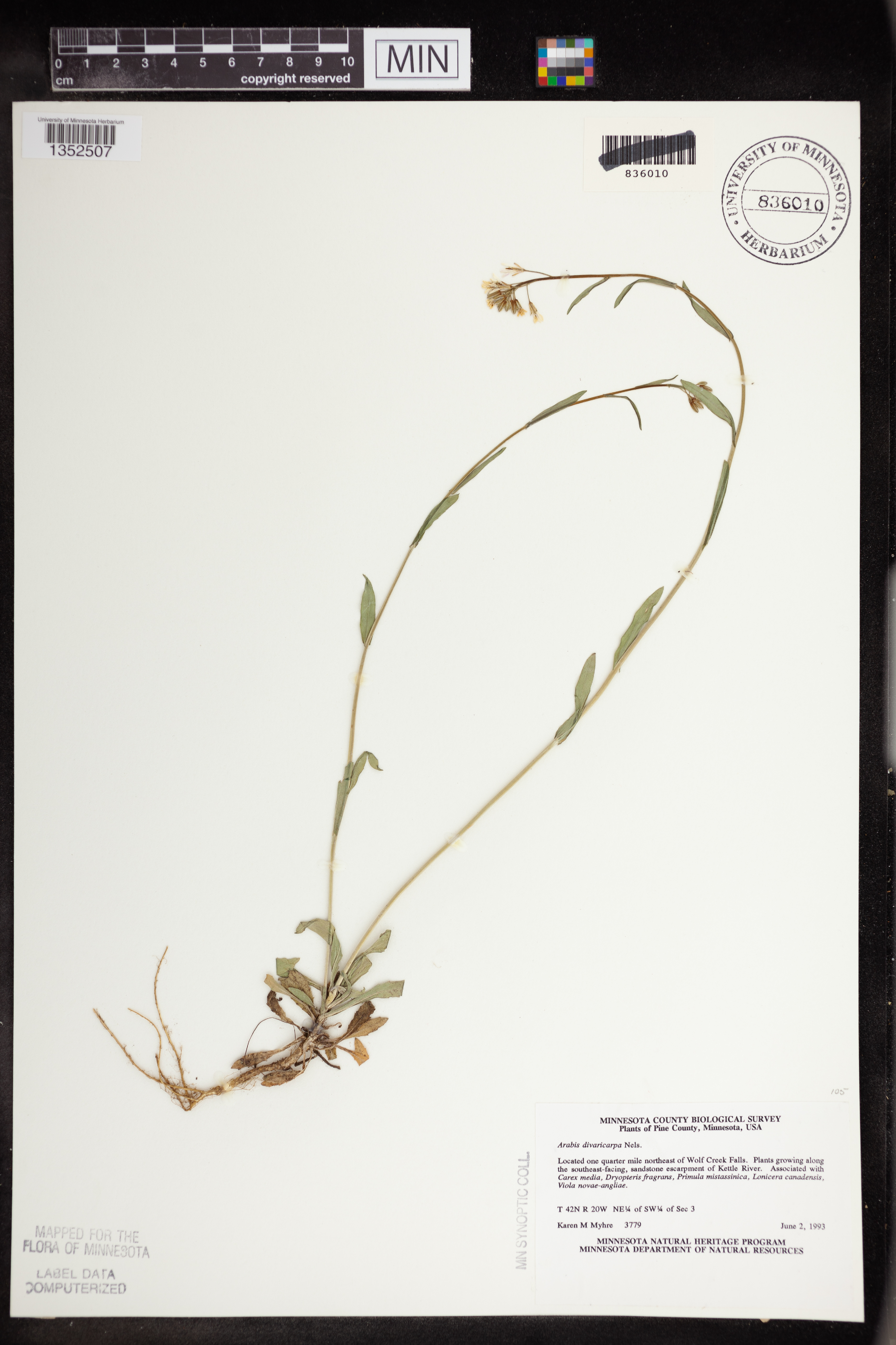 Plants growing along the SE-facing, sandstone escarpment of River. Assoc. with Carex media, Dryopteris fragrans, Primula mistassinica, Lonicera canadensis, Viola novae-angliae