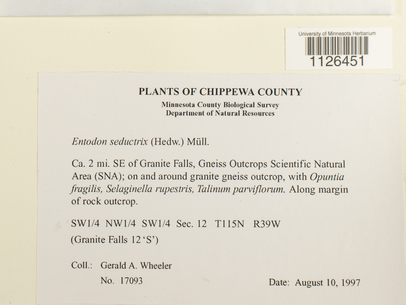 United States, Minnesota, Chippewa, Ca. 2 mi. SE of Granite Falls, Gneiss Outcrops Scientific Natural Area (SNA) SW1/4 NW1/4 SW1/4 of Sec. 12. (Granite Falls 12'S')