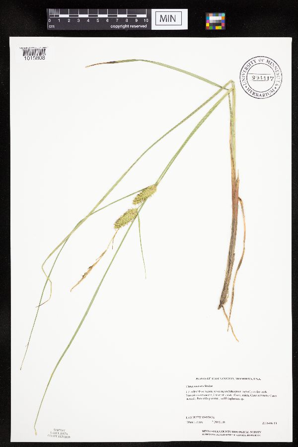 Growing in Sphagnum mat of poor fen with Vaccinium oxycossos, Carex utriculata, Carex stricta, Carex echinata, Carex lacustris, Potentilla palustris, and Eriophorum sp.
