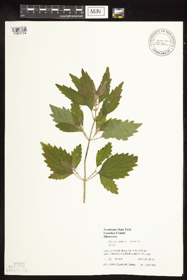 Low, wet woods along trail ... with clearweed, wood nettle, and white avens