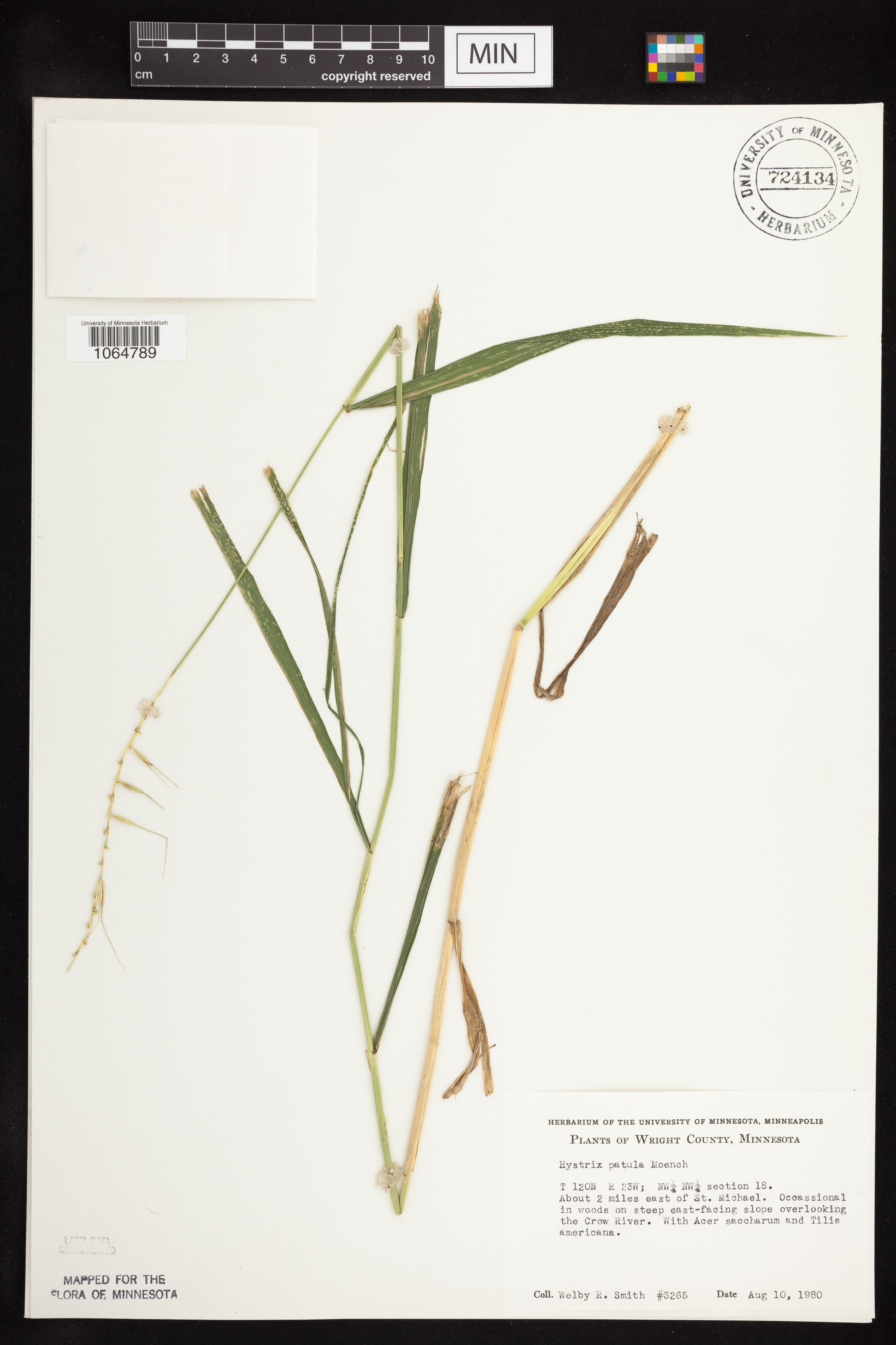 United States, Minnesota, Wright, Wright Co.; about 2 mi E of St. Michael; slope overlooking the Crow River. T120N R23W NW1/4 NW1/4 sec.18.;;120N;23W;18