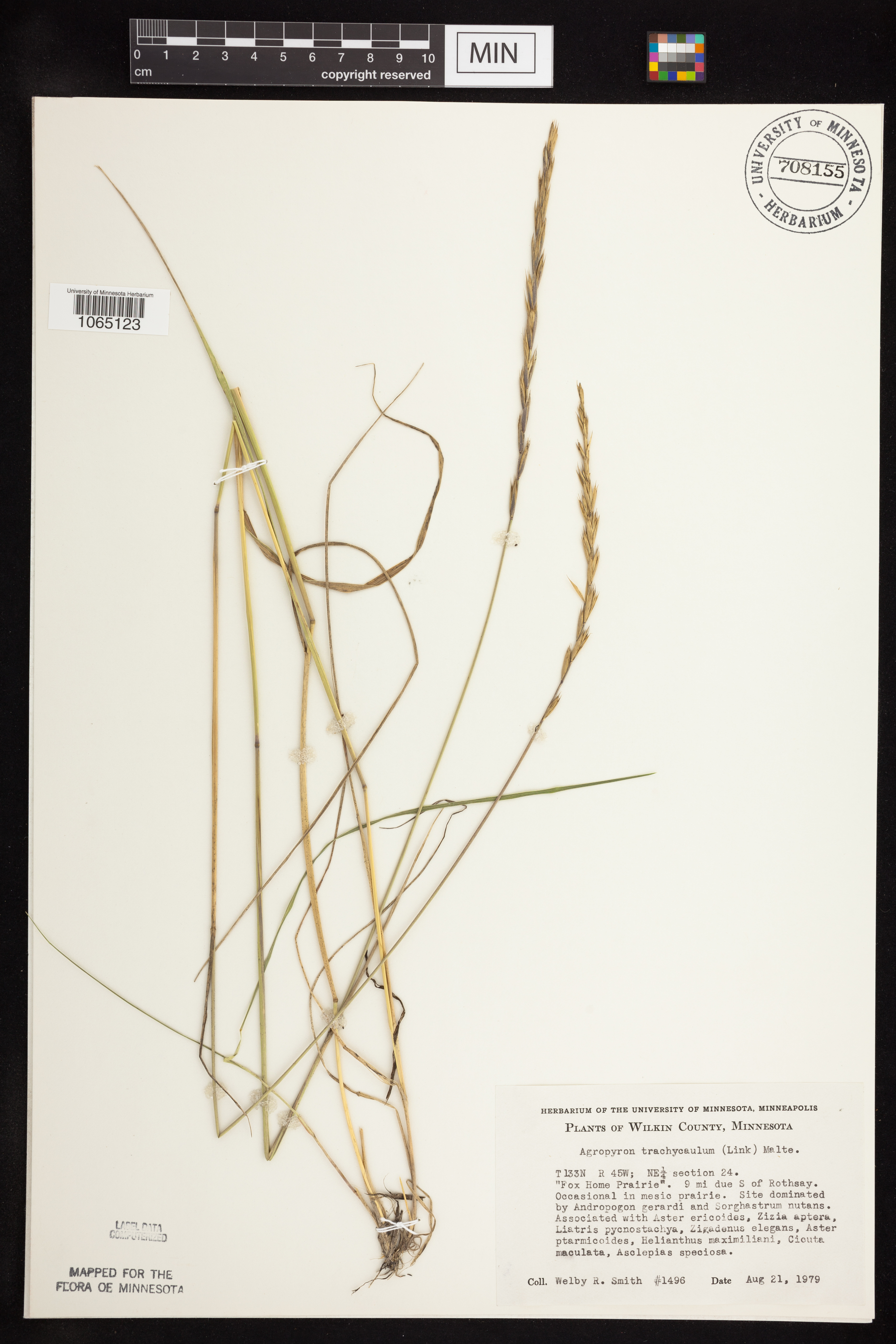 mesic prairie; dom. by Andropogon gerardi & Sorghastrum nutans; with Aster ericoides, Zizia apter, Liatris pycnostachya, Zigadenus elegans, Aster ptarmicoides, Helianthus maximiliani, et al.