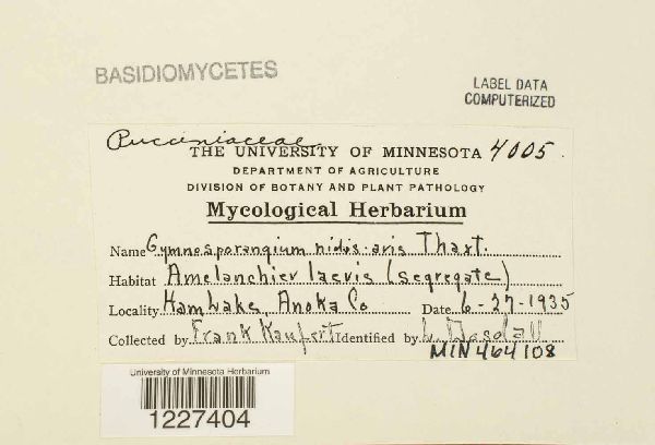 On Amelanchier laevis (segregate); aecial host.