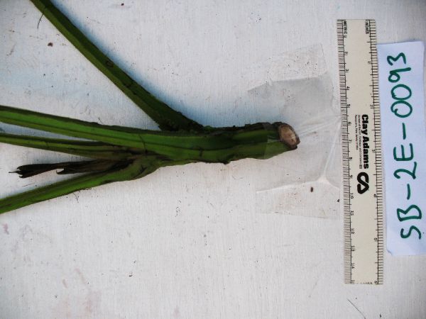 TREE DBH 13.4cm, OUTER BARK smooth, with lenticels, BARK grey, green, WOOD yellow, EXUDATE absent, from felled plot. Local name: kubul kalib.