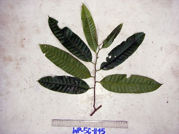 TREE to 8.8m in height, DBH 5.4cm, trunk height to foliage 6.4m, crown height 2.4m, crown width 3.1m, OUTER BARK rough, FISSURES broad, BARK brown, light brown, yellow, white, grey, CAMBIUM brown, light brown, WOOD brown, light brown, white, EXUDATE white, from felled plot. Local name: kapup sisigalang maku. Local uses: for building small porches and balconies.