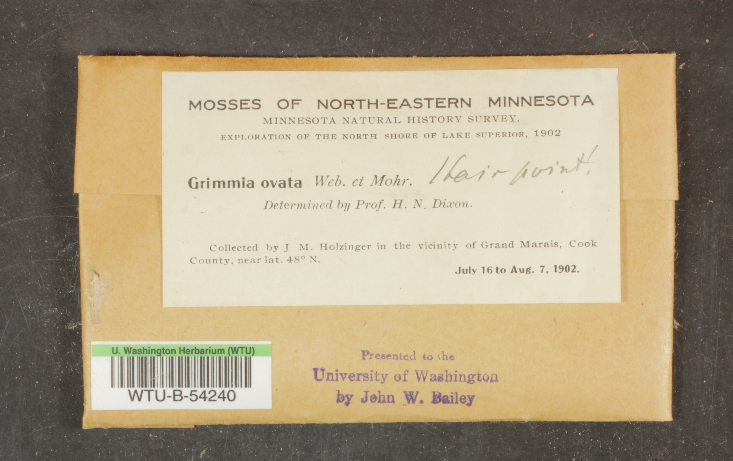 University of Minnesota Herbarium acquisitions pending accessioning
